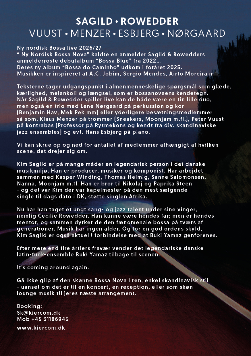 “Ny Nordisk Bossa Nova” kaldte en anmelder Sagild & Rowedders anmelder-roste debutalbum “Bossa Blue” fra 2022.